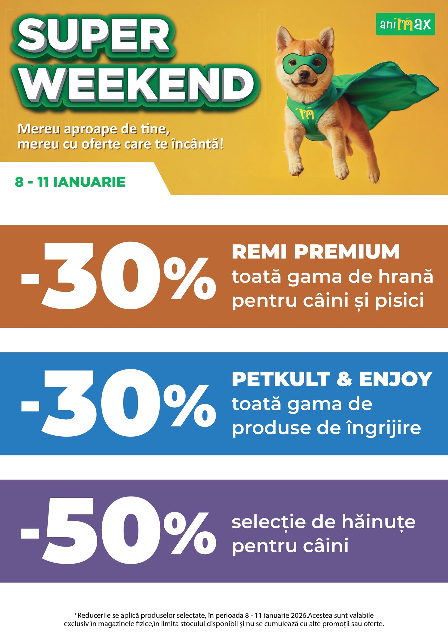 Reducerile sunt valabile EXCLUSIV în magazinele fizice ANIMAX, în perioada 8 și 11 ianuarie, în limita stocului disponibil. Vezi lista magazinelor AICI.