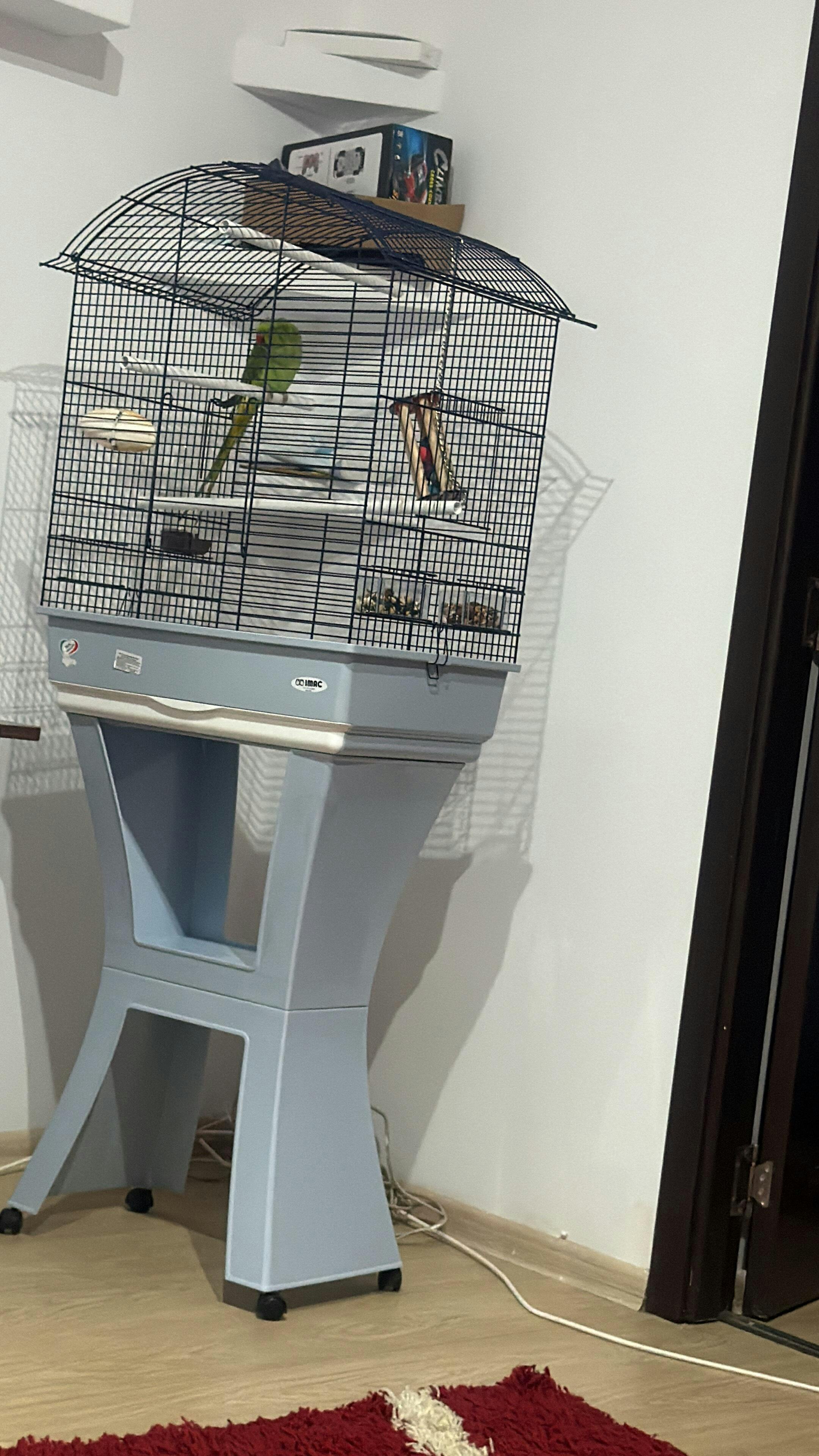 Colivie albastra pentru pasari Imac Calla 62x43x78 cm este prevazuta cu suport.